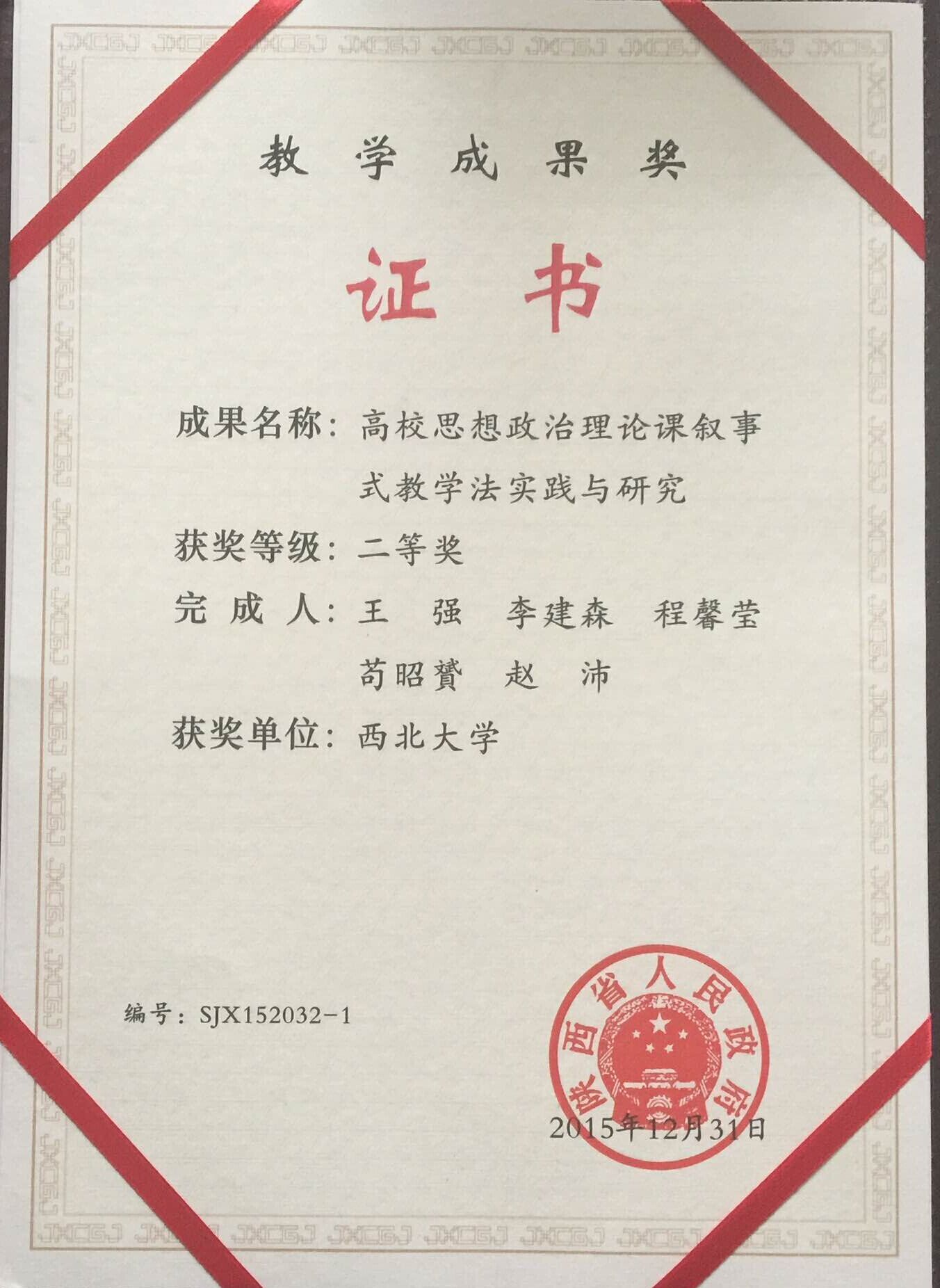 根据《西北大学关于2015年教学成果奖评审奖励推荐工作的通知》(西大教〔2015〕23号),经过各单位推荐,并经2015年10月22日专家评审委员会评审,我院“高校思想政治教理论课叙事式教学法研究与实践”荣获西北大学2015年教学成果一等奖,陕西省教学成果二等奖。
