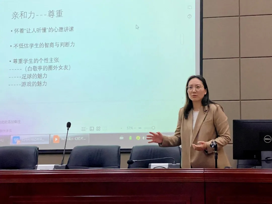 梁俊豪针对教资面试三大环节——“试讲、答辩、结构化”做了详细讲解,特别强调在面试环节中要注意的问题,并以身示范,使同学们对教资面试有更深层次的认识。苟昭赟从师者“魂”“骨”“形”进行简述,并分别介绍了三者的内涵。陈娟针对求职,从提升综合素质和树立目标两个层面为同学们提出了建议。