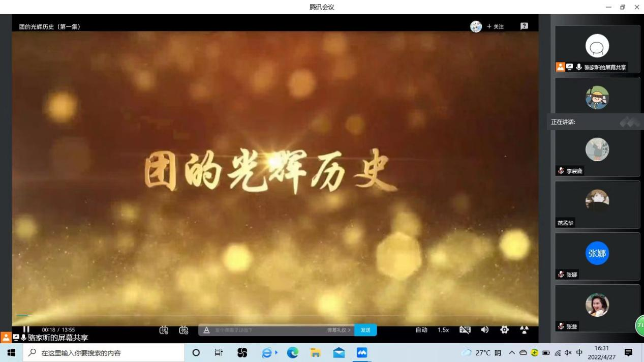 为引领我院青年团员深入学习百年团史,从团史中汲取前行力量,积极弘扬践行共青团百年奋斗精神,我院2021级研究生团支部结合“喜迎二十大,永远跟党走,奋进新征程”主题实践活动要求,于4月27日下午在线上开展了“忆百年团史,悟青春担当”主题团日活动。