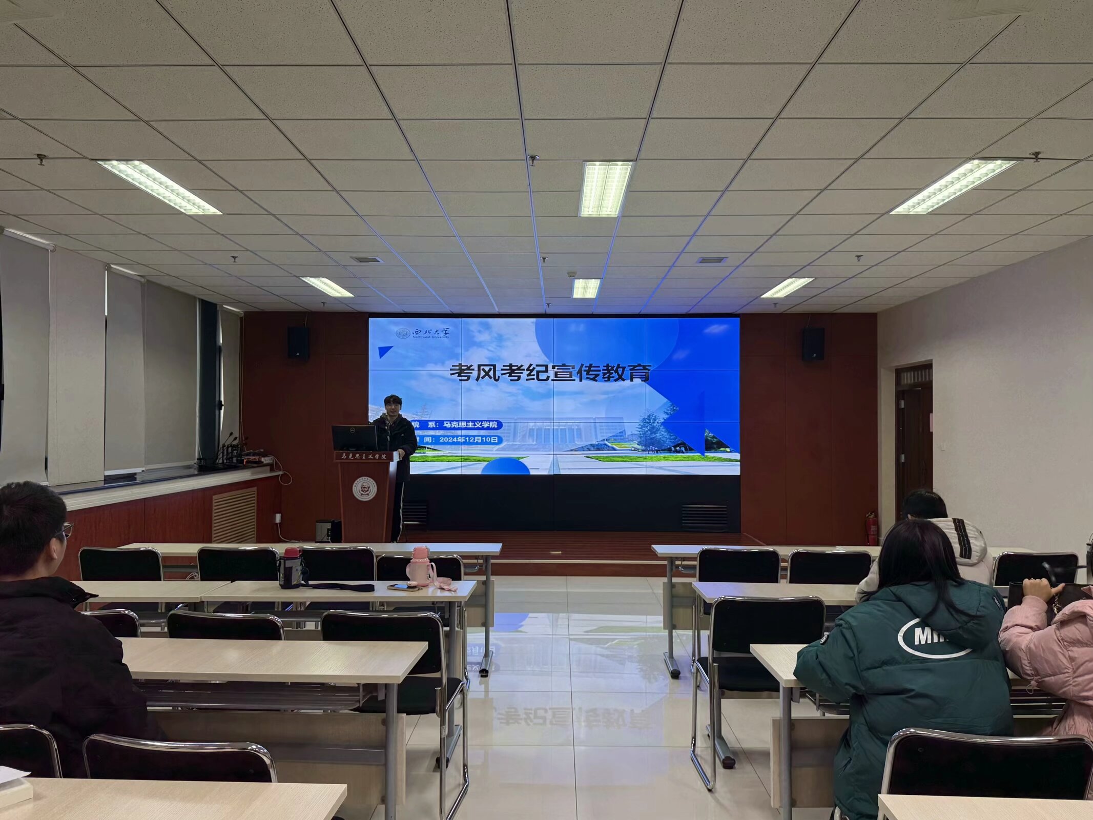 12月10日下午,我院召开了四六级考风考纪宣传教育大会。会议由2024级马克思主义中国化研究专业硕士研究生张天一主持,我院全体四六级考生参会。