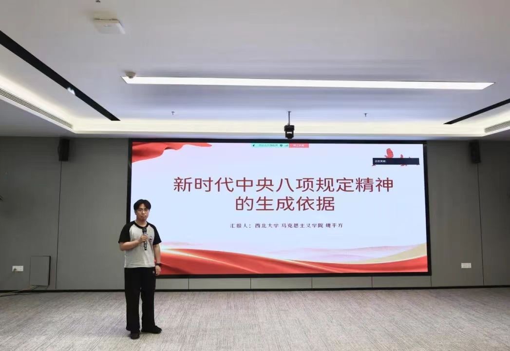 魏平方以《新时代中央八项规定精神的生成依据》为题,从马克思主义政党建设原理与中国特色社会主义实践需求的双重维度,讲述了新时代中央八项规定形成的理论渊源及现实依据,并号召党员干部积极成为新时代背景下严格落实中央八项规定的坚定执行者。