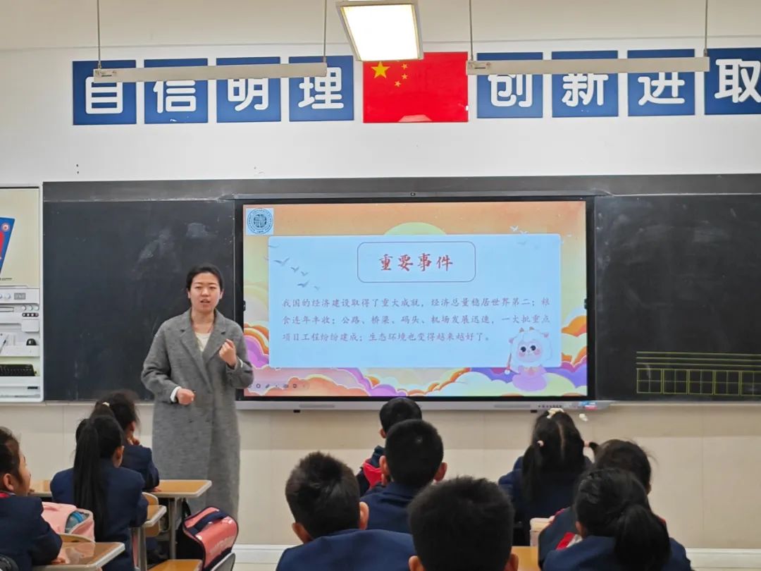 邓喆以《走进新时代》为题,深入解读了“新时代”的丰富内涵,并介绍了我国在新时代取得的伟大成就,鼓励同学们努力学习课本知识,树立远大理想,为国家的繁荣富强不懈奋斗。