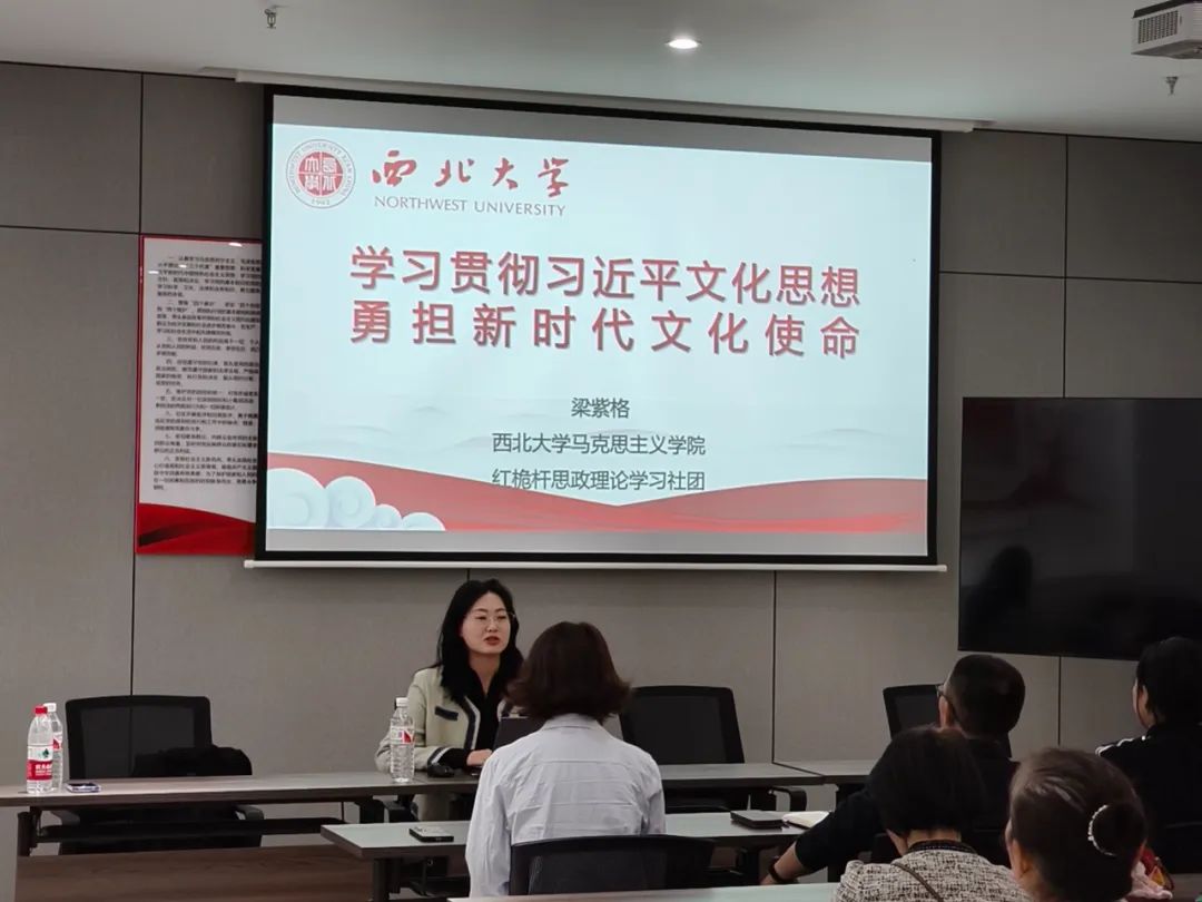梁紫格以《学习贯彻习近平文化思想 勇担新时代文化使命》为题,从“体”和“用”两个方面对习近平文化思想进行了系统的梳理,讲解了习近平文化思想的形成过程、丰富内涵和当代价值。