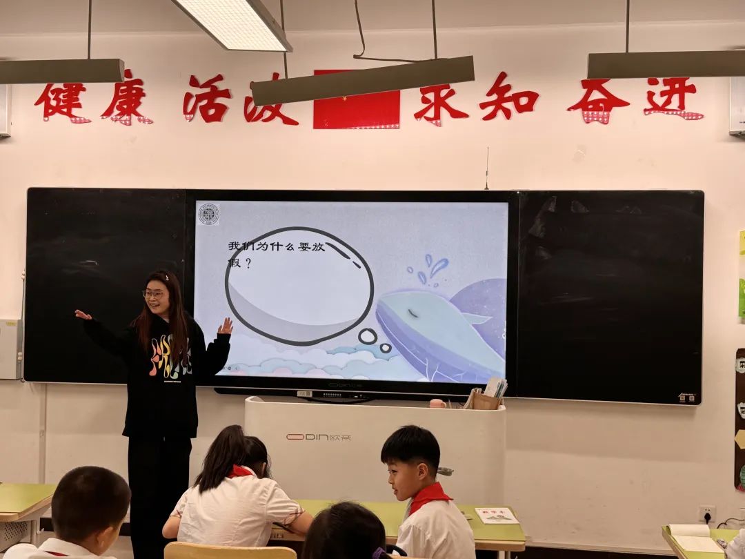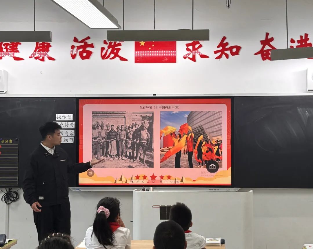 杨姣以《我爱你中国》为题,深入讲解国旗、国徽、国歌的历史底蕴与精神内涵,强调爱国主义不仅体现在对祖国山河的热爱,更要落实在日常生活实践中。