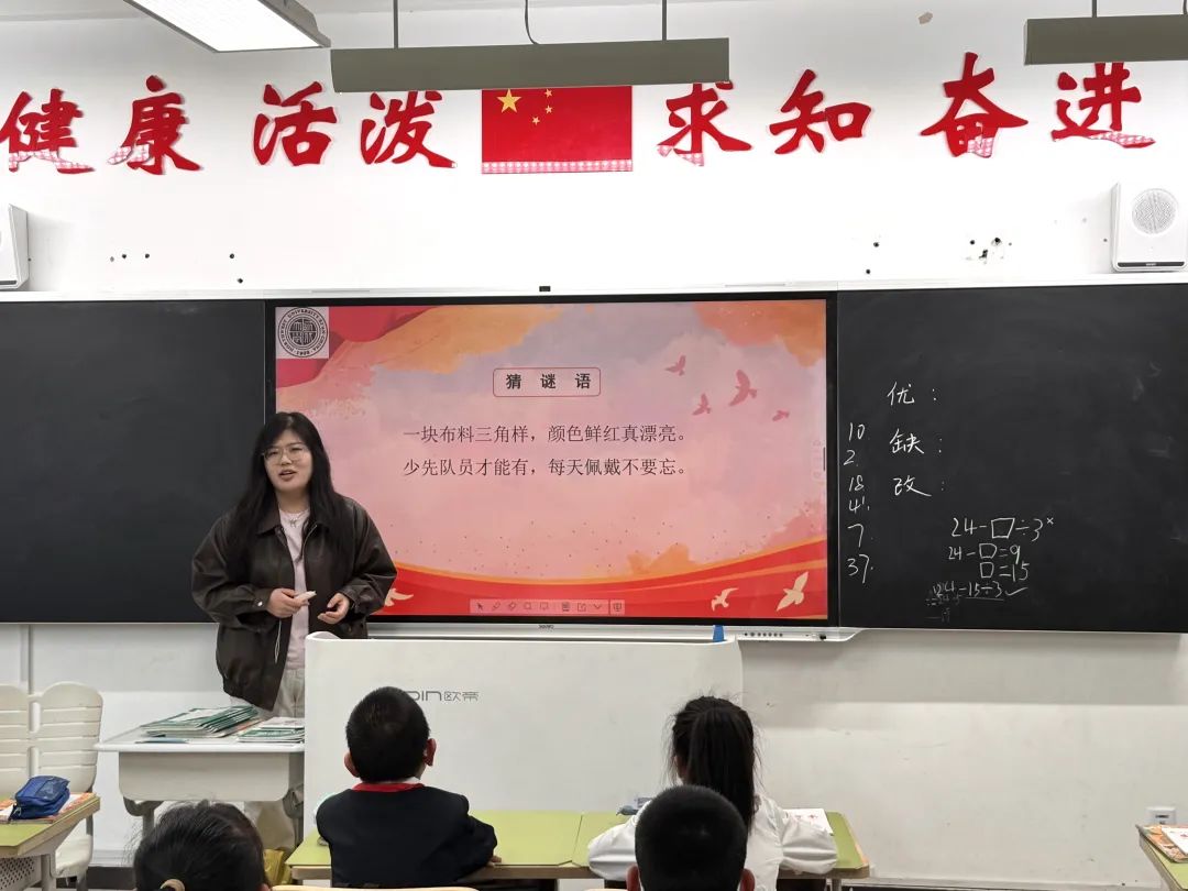 于晓莹以《光荣的少先队》为题,阐述了少先队的起源、使命与光荣,激励同学们坚定不移听党话、跟党走,努力从身边小事做起,为国家发展贡献青春力量。