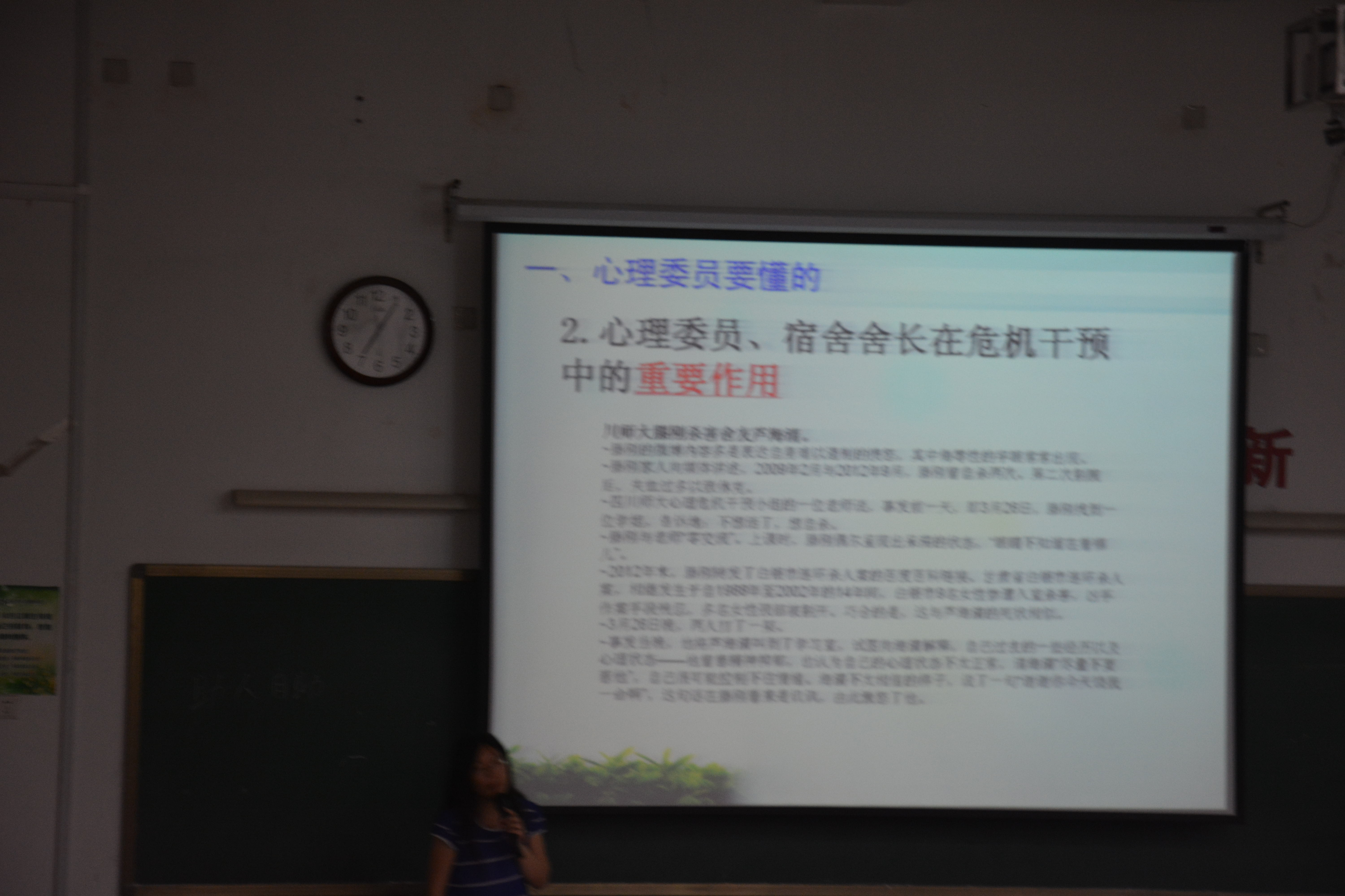 之后,老师又讲述了心理委员和宿舍舍长应该了解的一些注意事项,包括什么是心理危机干预和各种其他心理健康方面的知识。接着,老师举了几个案例来具体说明心理健康的重要性和学习这些心理健康知识的重要性,使得大家更加重视自己的心理健康。