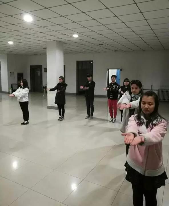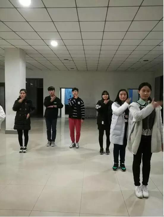 尽管排练的大厅有些冷,但同学们的热情始终不减。