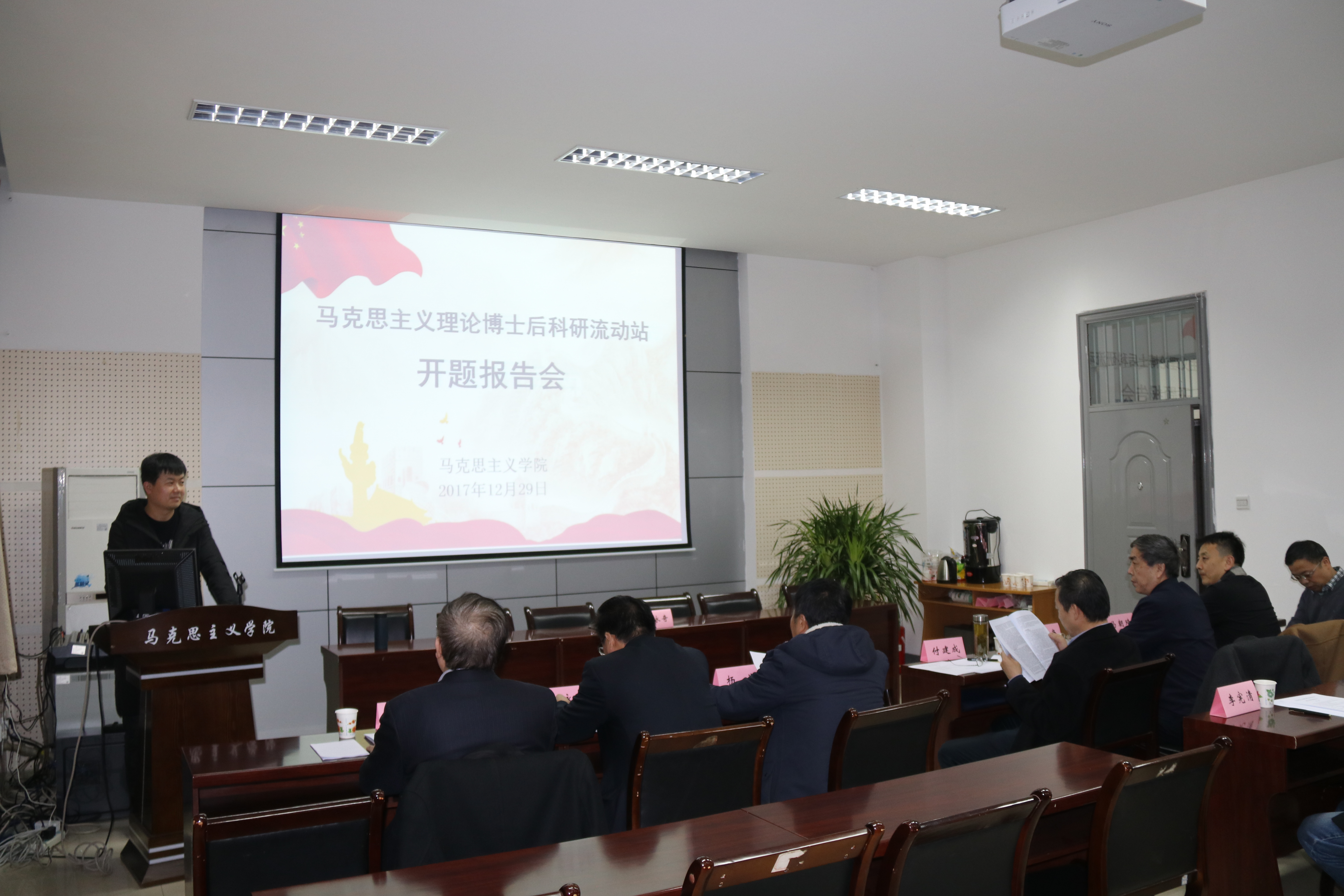 2017年12月29日下午3点,马克思主义理论博士后科研流动站在站博士后张永奇的开题报告会在我院一楼会议室举行。付建成教授、王严军教授、马朝琦教授、杨洪教授、王永智教授、张炜达教授及合作导师梁星亮教授参加报告会。我院李宪清副院长主持报告会。
