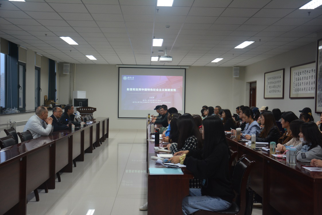 在互动环节,师生就如何理解与把握提升干部治理能力与充分发挥中国特色社会主义制度优势的关联性等问题展开了深入的交流,在座师生获益良多。