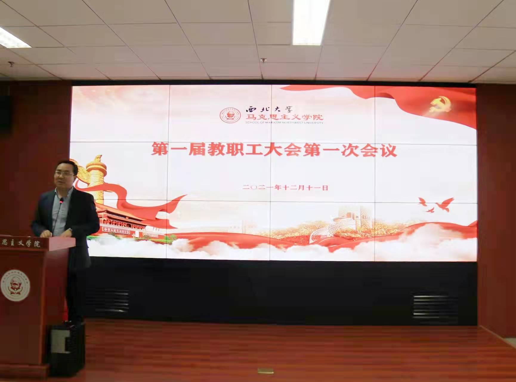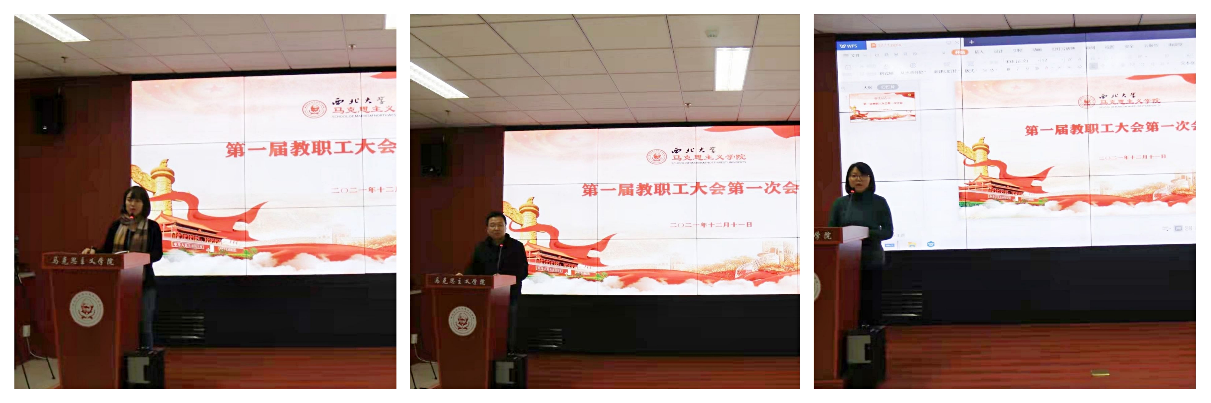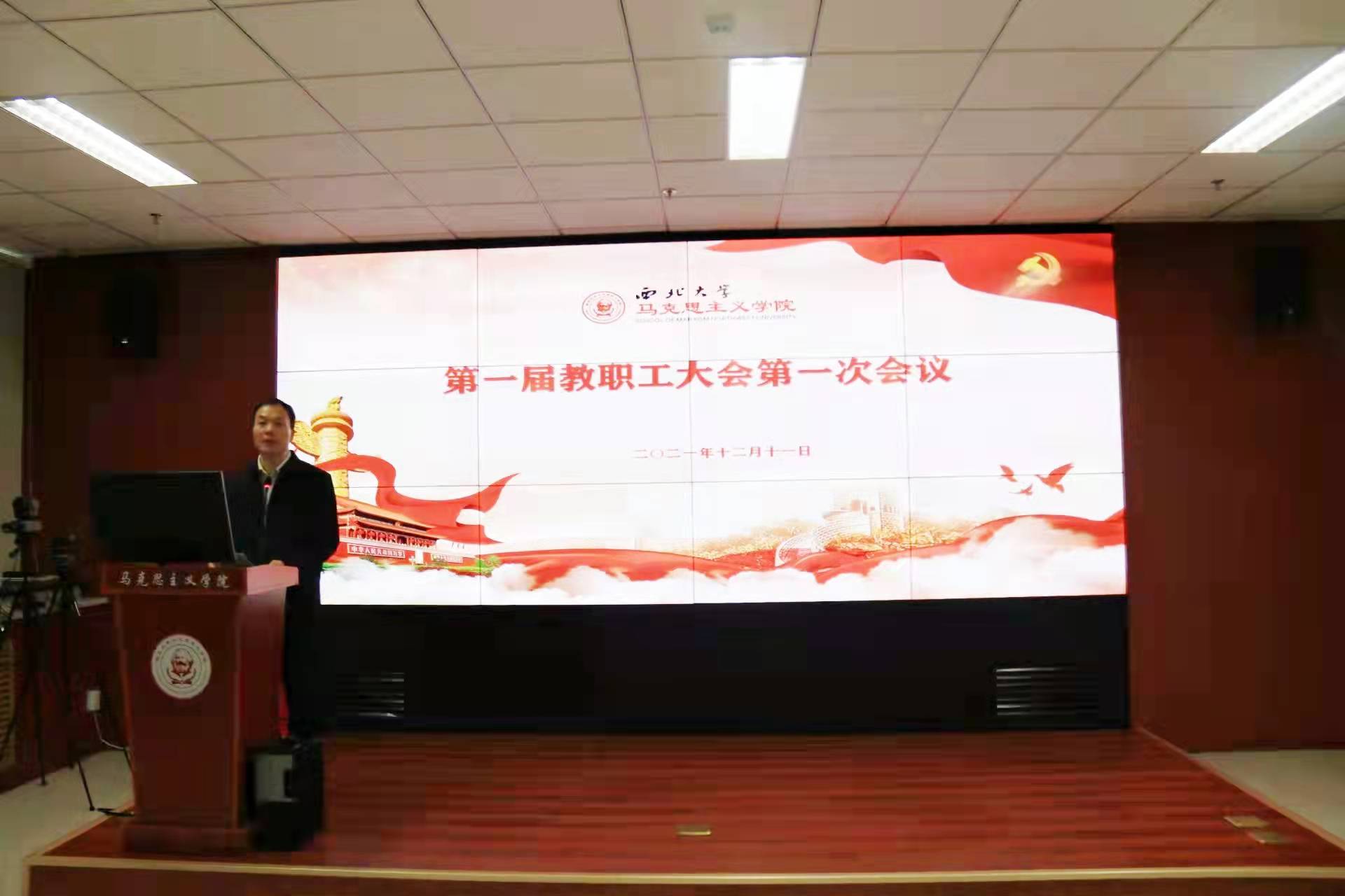 12月11日,马克思主义学院在长安校区隆重召开第一届教职工大会第一次会议。大会的主题是“同心同德谋发展,立德树人牢根本,铸魂育人谱新篇”。校党委副书记、马克思主义学院院长吕建荣,学院党政领导班子成员,全体教职工参加了会议。学院工会主席王振民主持会议。