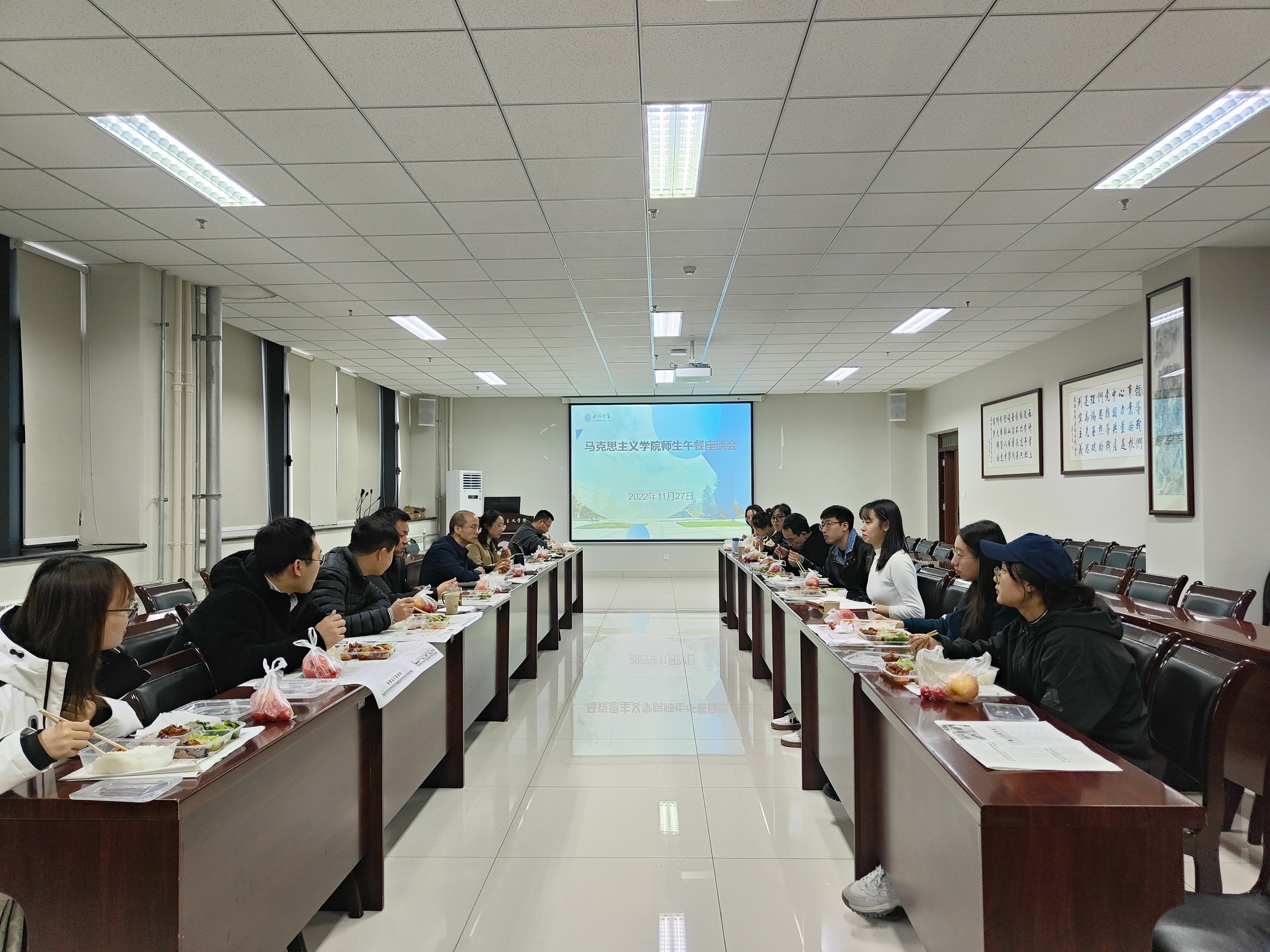 11月27日,我院举办师生午餐座谈会,学院党委书记韩凯峰、党委副书记邵平、副院长袁成、张永奇副教授及辅导员刘娟、学院学生代表参会。