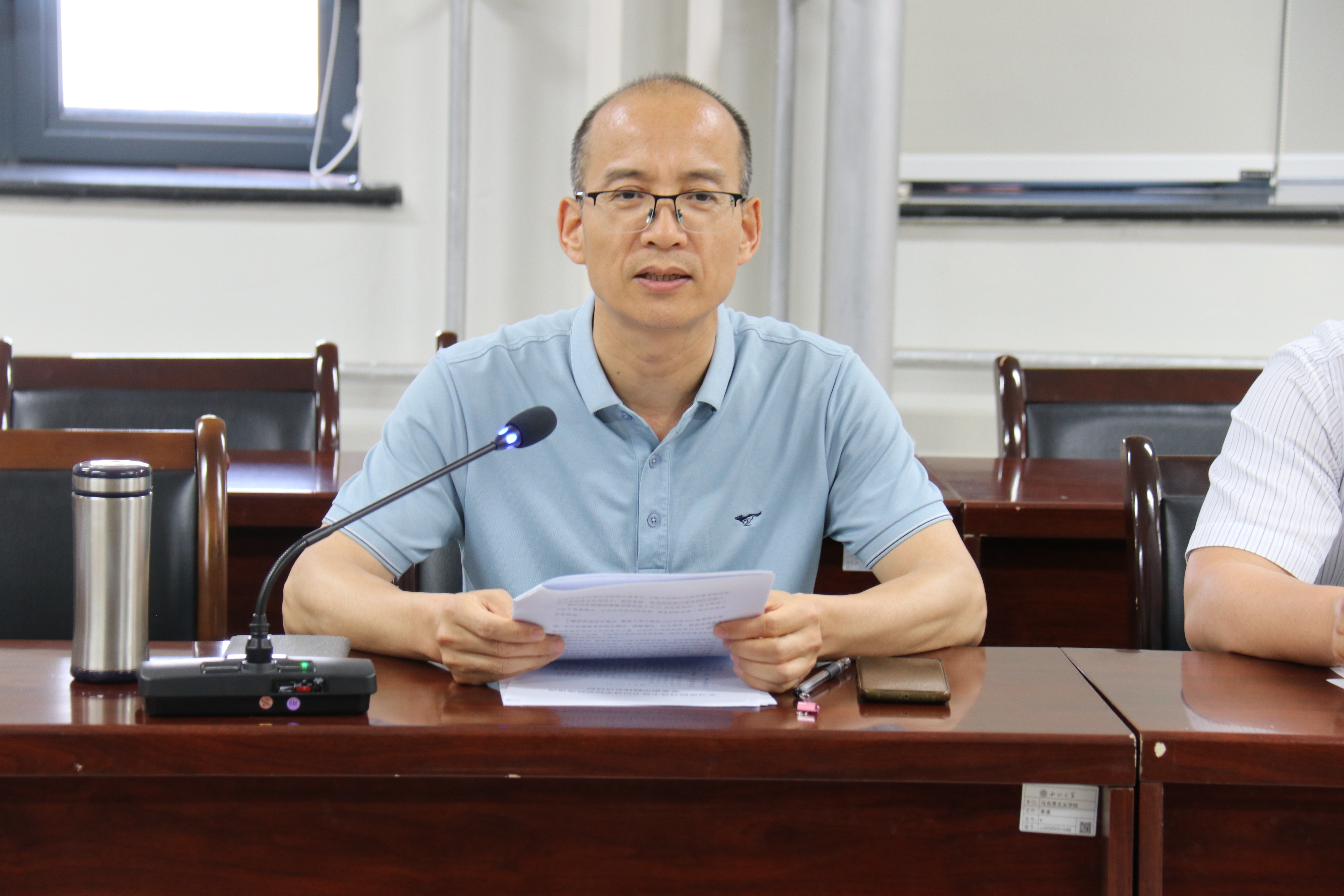 5月17日下午,我院召开学习贯彻习近平总书记对学校思政课建设重要指示精神会议。学院领导班子全体成员、教研部主任、教工党支部书记及思政课教师参加会议。会议由院党委副书记邵平主持。