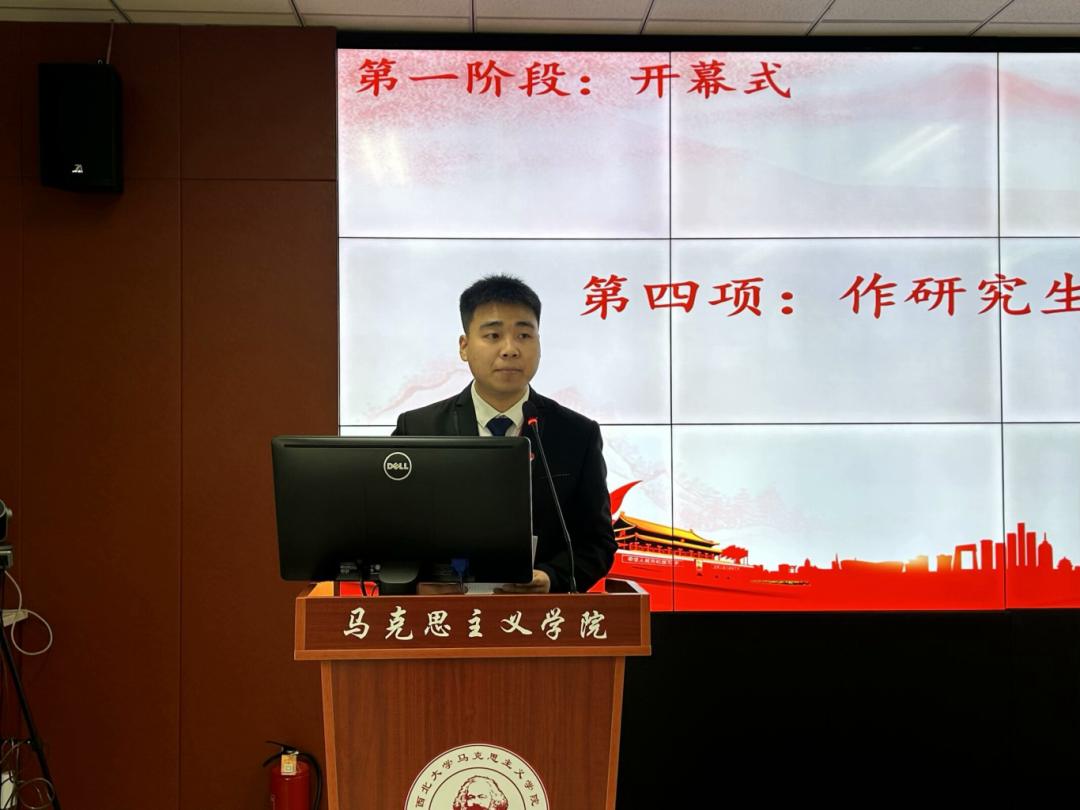 大会伊始,校研究生会主席团成员王璐致开幕词。她表示,此次大会既是对过往工作经验的凝练总结,更是开启新征程、谋划新篇章的关键起点,校研究生会将与马克思主义学院研究生会继续携手为同学们营造良好的成长环境。我院研究生会主席团成员王金富代表学院第四届研究生会作了题为《奋勇拼搏新征程 勇毅前行书华章 团结带领全院研究生在实现中华民族伟大复兴中国梦的进程中绘就新画卷》的工作报告,全面总结了学院关于开展学生工作的经验思考,并作了进一步的目标规划。