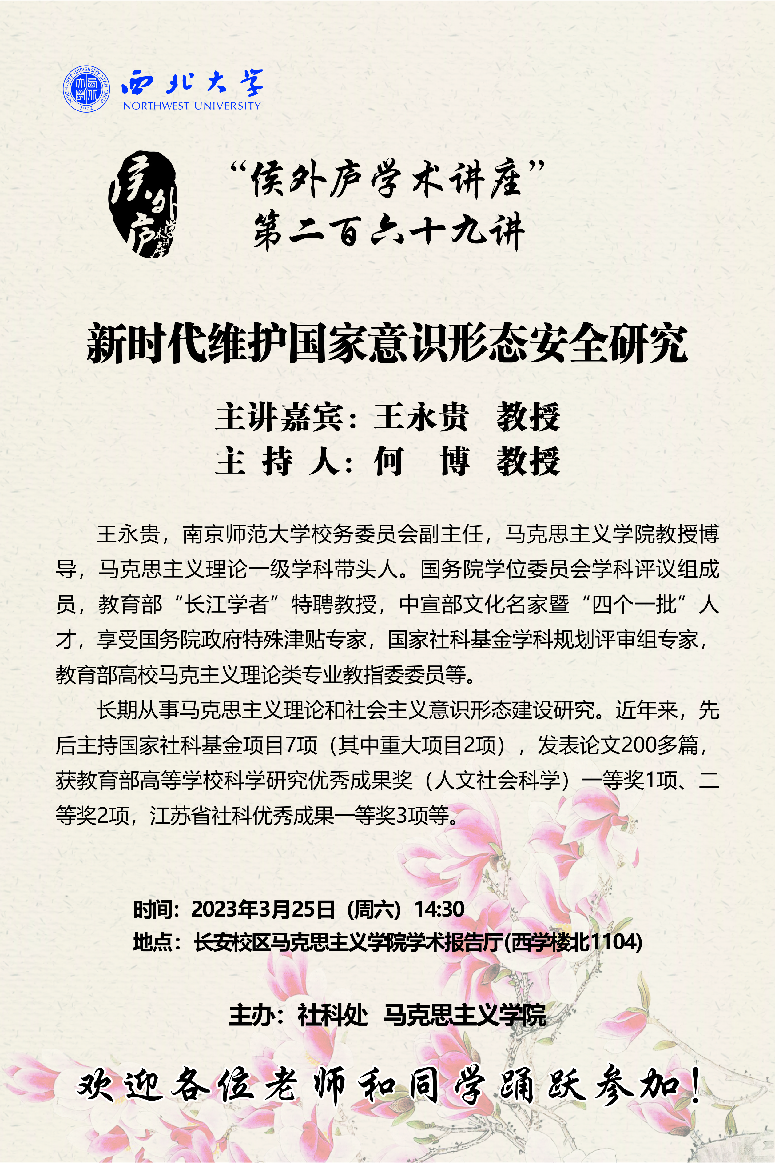 “侯外庐学术讲座”第二百六十九讲—— 新时代维护国家意识形态安全研究